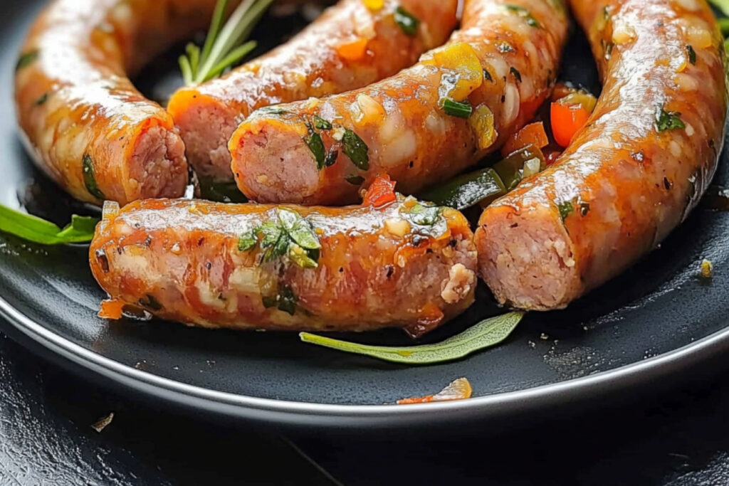 Préchauffez le four à 190°C (375°F) et placez les saucisses sur une plaque de cuisson. Faites cuire pendant 20 à 25 minutes, jusqu’à ce qu’elles soient bien cuites et dorées.