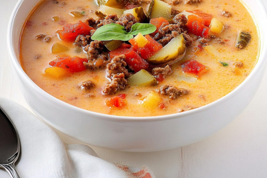 La soupe cheeseburger est une recette réconfortante qui combine le goût savoureux du cheeseburger classique avec la chaleur d’une soupe délicieuse. Parfaite pour les soirées fraîches, cette recette facile à préparer ravira les petits et les grands. Voici comment réaliser ce plat succulent.