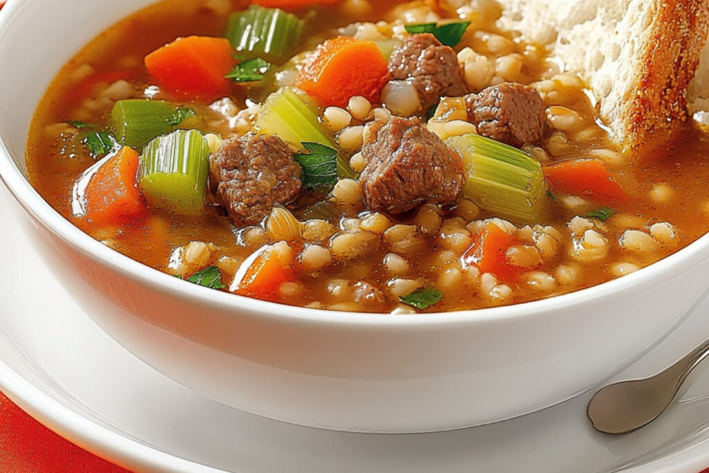 La soupe de bœuf haché et d’orge est un plat réconfortant, nutritif et facile à préparer. Avec seulement quelques ingrédients, vous pouvez créer un repas savoureux qui ravira toute la famille. Cette recette démontre à quel point il est possible de concocter un plat délicieux sans passer des heures en cuisine.