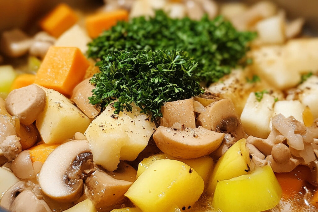Ajoutez le bouillon de légumes dans la casserole. Portez le tout à ébullition, puis réduisez le feu et laissez mijoter pendant 15 à 20 minutes.