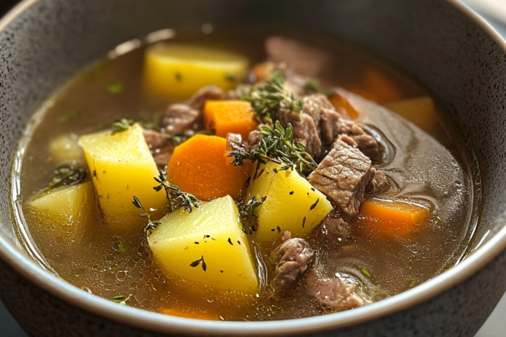Soupe style ragoût de bœuf et légumes à la mijoteuse