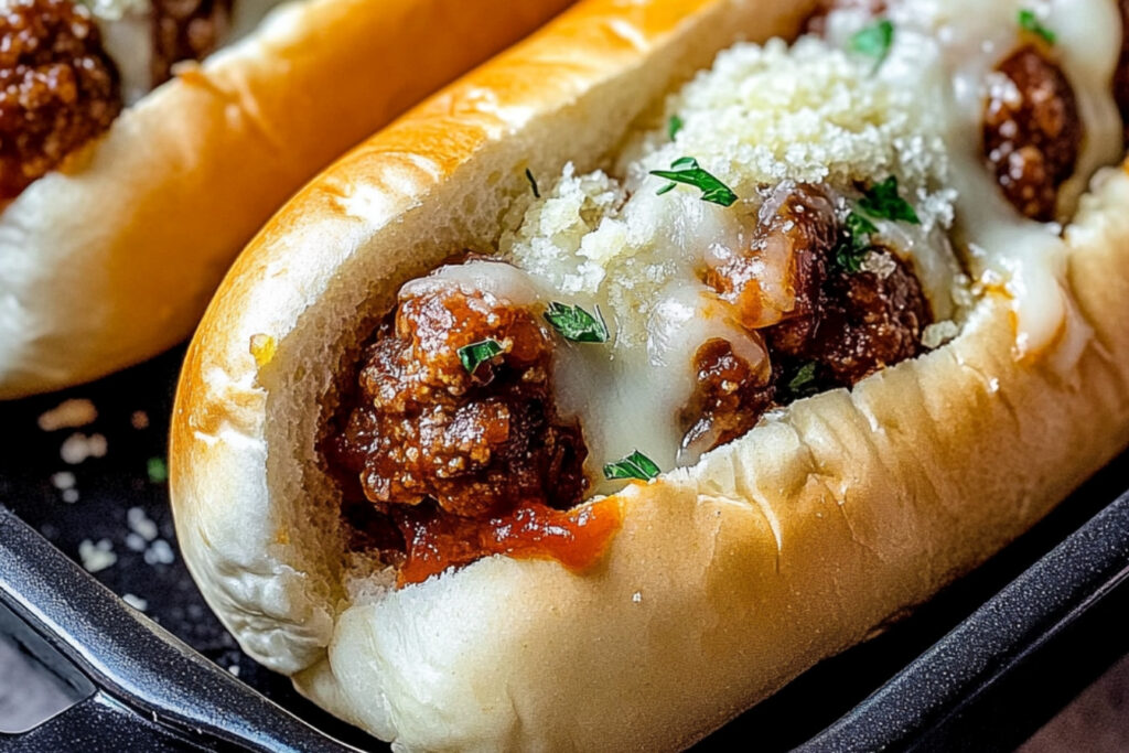 Chauffez les sous-marins légèrement au four et ajoutez les boulettes de viande avec de la sauce et du fromage pour un mélange savoureux.
