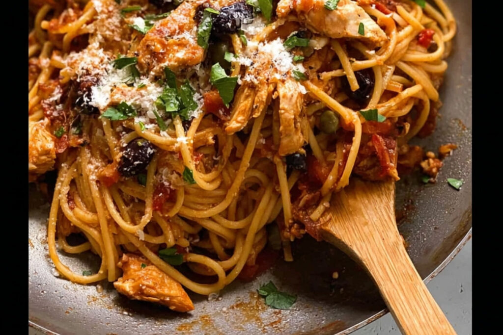 Ce plat de spaghetti au poulet sicilien est un mélange parfait de saveurs méditerranéennes et de textures. Sa simplicité et son goût riche en font un repas idéal pour les soirées en famille ou pour impressionner des invités. Les ingrédients frais et savoureux valorisent chaque bouchée, et il est si facile de préparer que vous voudrez le refaire encore et encore.