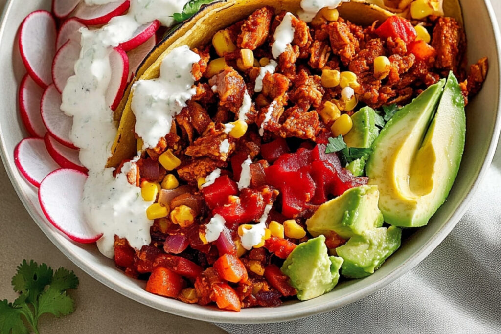 Les Buddha bowls style tacos à base de porc sont parfaits pour une soirée rapide, tout en étant généreux en saveurs et en couleurs. C’est un plat qui peut facilement être adapté à vos préférences, en ajoutant des ingrédients que vous aimez. Bon appétit!