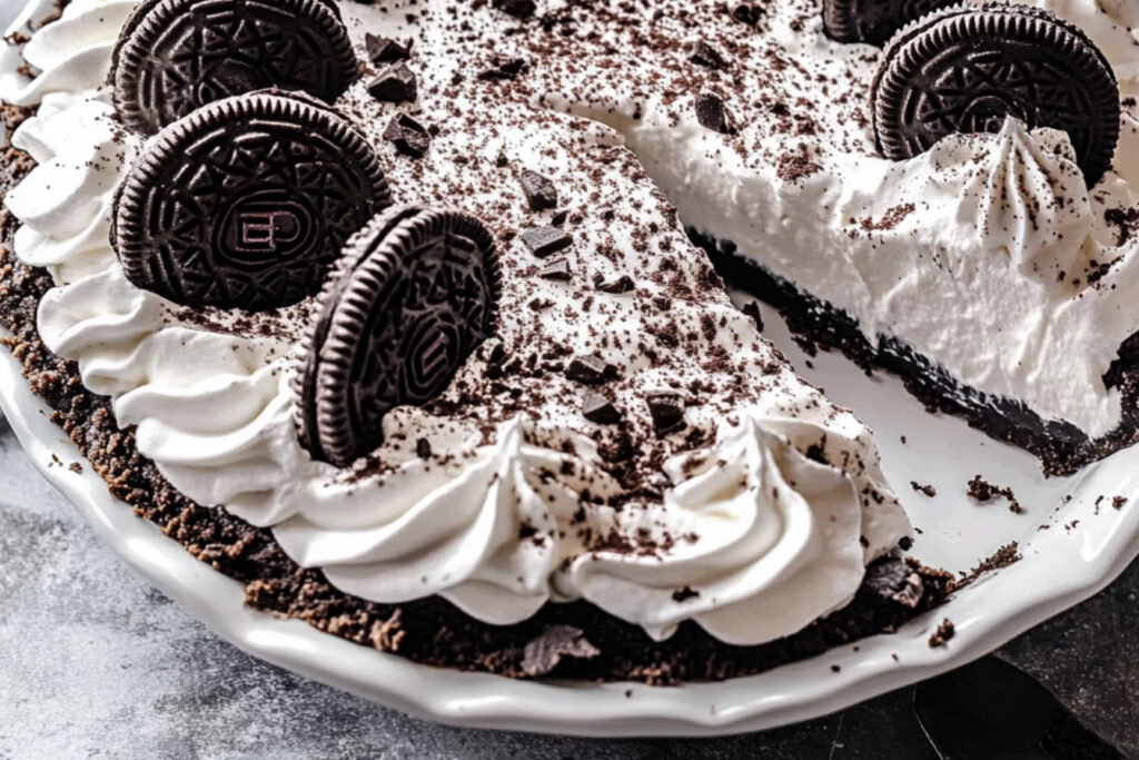 Ajoutez des morceaux de biscuits Oreo sur le dessus de la tarte pour la décoration avant de servir.