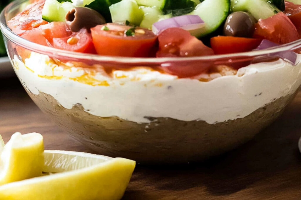 Ce dip grec en couches peut être servi avec des pita, des légumes frais ou des nachos et est un incontournable pour toute réunion conviviale. Profitez de vos moments entre amis avec cette recette rafraîchissante et délicieuse.