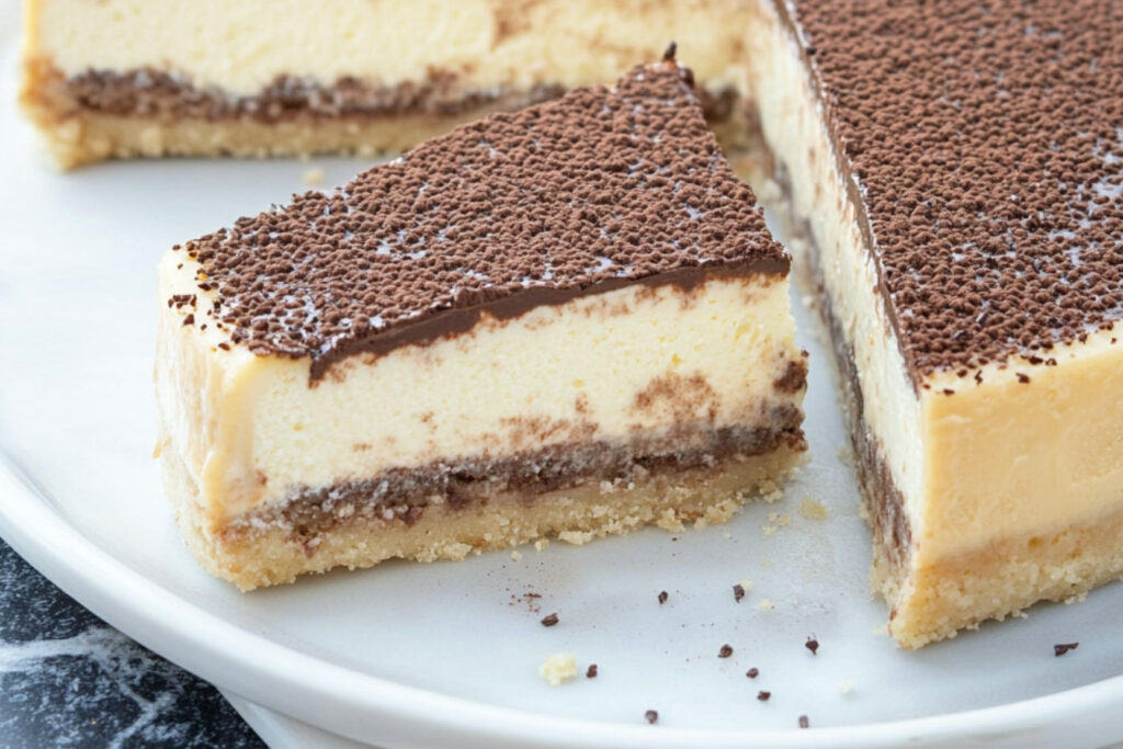 Le tiramisu cheesecake est une délicieuse fusion de deux desserts classiques : le tiramisu italien et le cheesecake crémeux. Cette recette apporte la richesse et la douceur du cheesecake tout en intégrant les saveurs emblématiques du tiramisu, comme le café, le mascarpone et le cacao. C’est le dessert parfait pour impressionner vos invités lors d’une occasion spéciale ou simplement pour se faire plaisir.