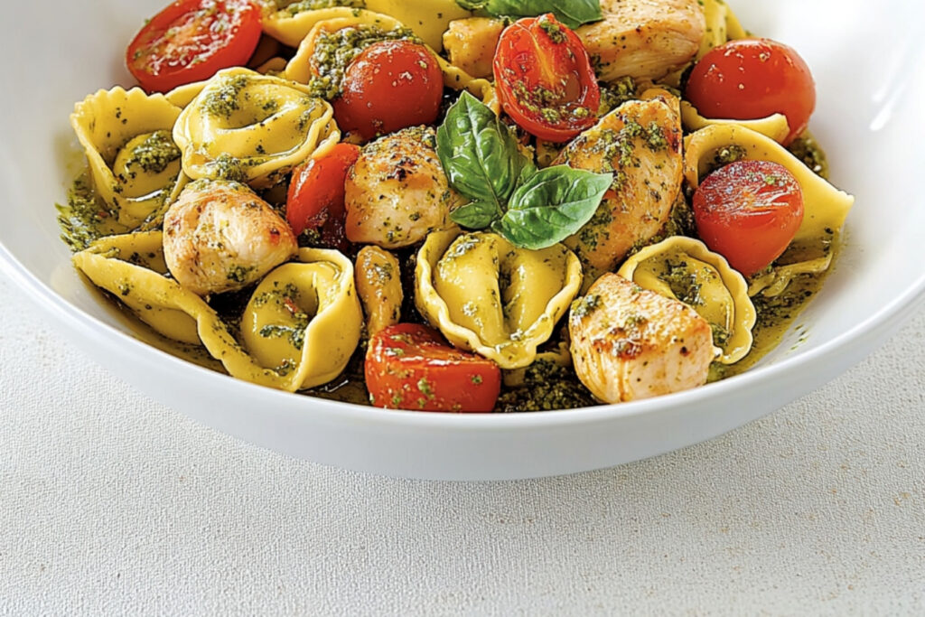 Tortellinis au pesto et poulet