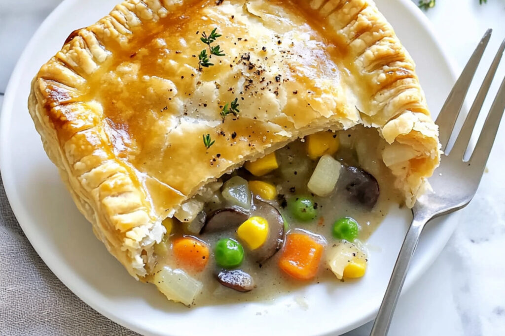 Servez le pot-pie chaud, accompagné d’une salade verte pour un repas équilibré.