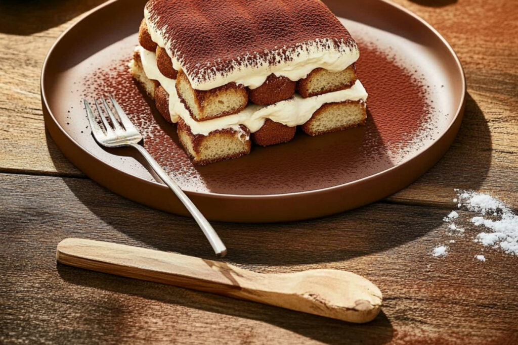 Avant de servir, saupoudrez le tiramisu de cacao en poudre à l’aide d’un tamis.