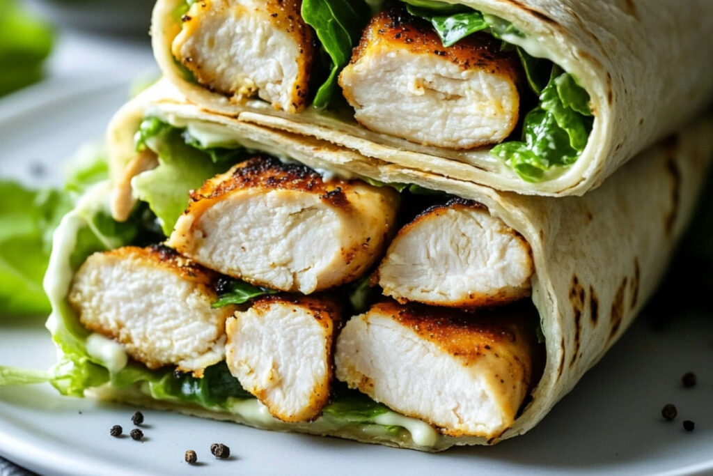 Cette recette permet de réaliser deux wraps au poulet César, parfaits pour deux personnes ou pour un déjeuner copieux.